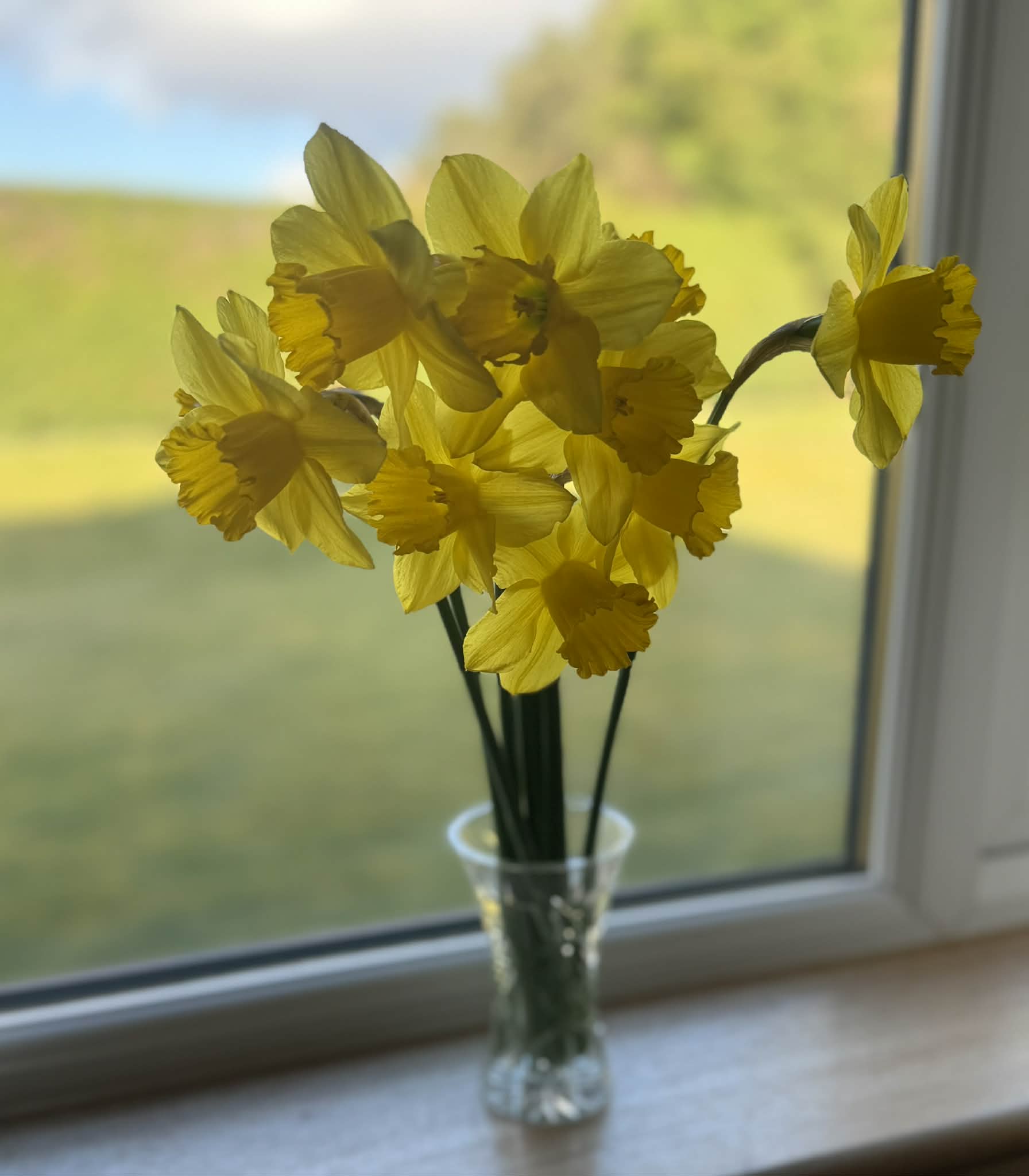 庭のスイセンが枯れてきたので、新しいものに取り換える。
