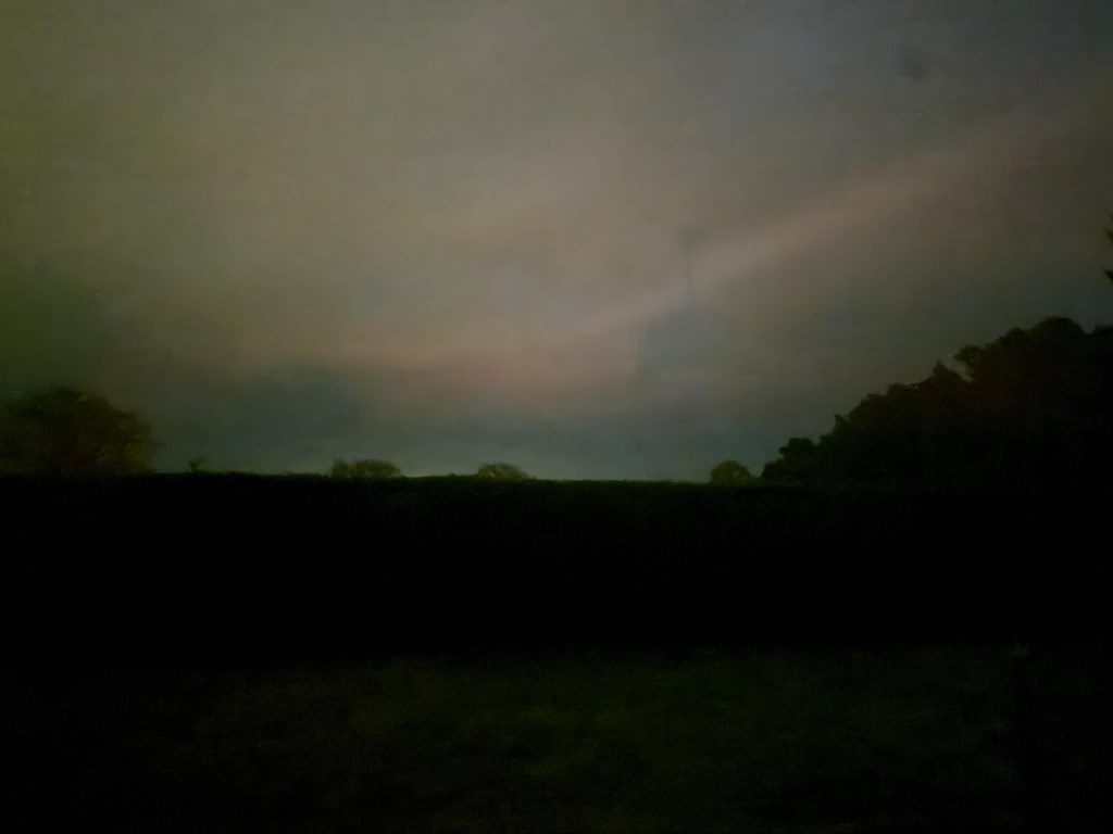 夕食はフィッシュアンドチップスを温める。オーロラかもしれない空を一応撮影しておいた。部屋のライトが写り込んでいるのはご愛敬。0:18就寝。