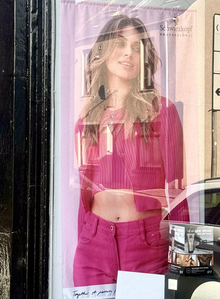 美容関連のお店のウィンドウにナスターシャ・キンスキー似のモデルを見つけ、思わず撮影。年齢的には違うと思うが、同じ系列のドイツ系美女だ。