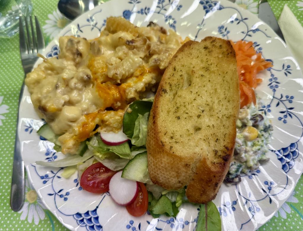7:05起床。今日はお義母さんが週に一度開催されるネイチャーカフェのランチ会に行く日で、我々も一緒に参加する。昔からのご近所夫妻、お隣のご夫妻と同じテーブルに座る。お義母さんとご近所夫妻はレバーの煮込み、インゲンマメ、マッシュポテト添え、こぐま氏はチキンのライス添え、自分はカリフラワーのチーズソースがけサラダ付きを注文した。