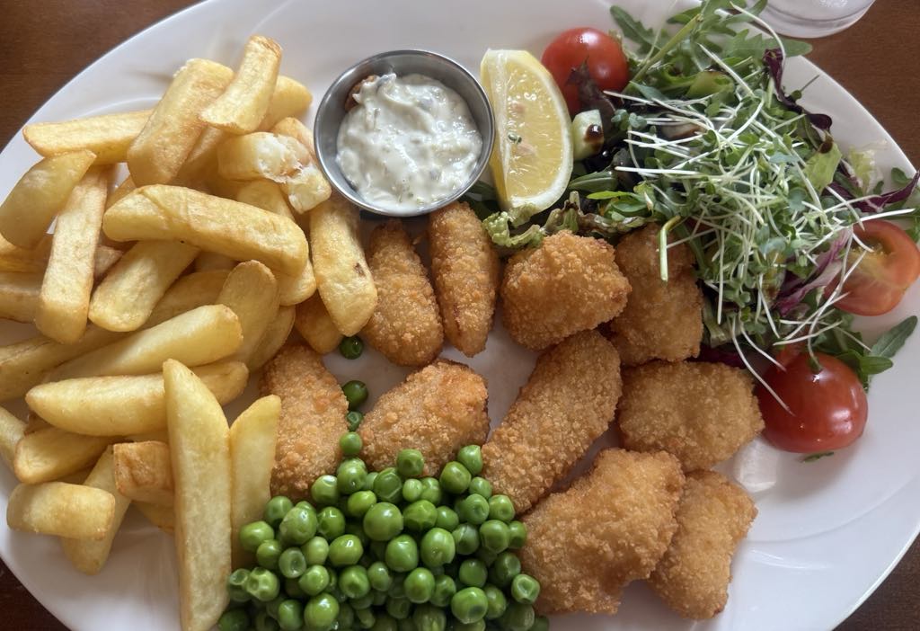 今日はホテルのレストランのランチを予約している。店内はかなり席が埋まっていた。お義母さんはローストビーフ(18.75ポンド)、こぐま氏はラムの煮込み(18.25ポンド)、自分はスカンピ(エビフライのようなもの、17.95ポンド)を注文。味自体はおいしかったが、チップスの量が半端なく2人に少しあげたが完食できず。食後、お義母さんがモカを自分はエスプレッソを頼んだ。