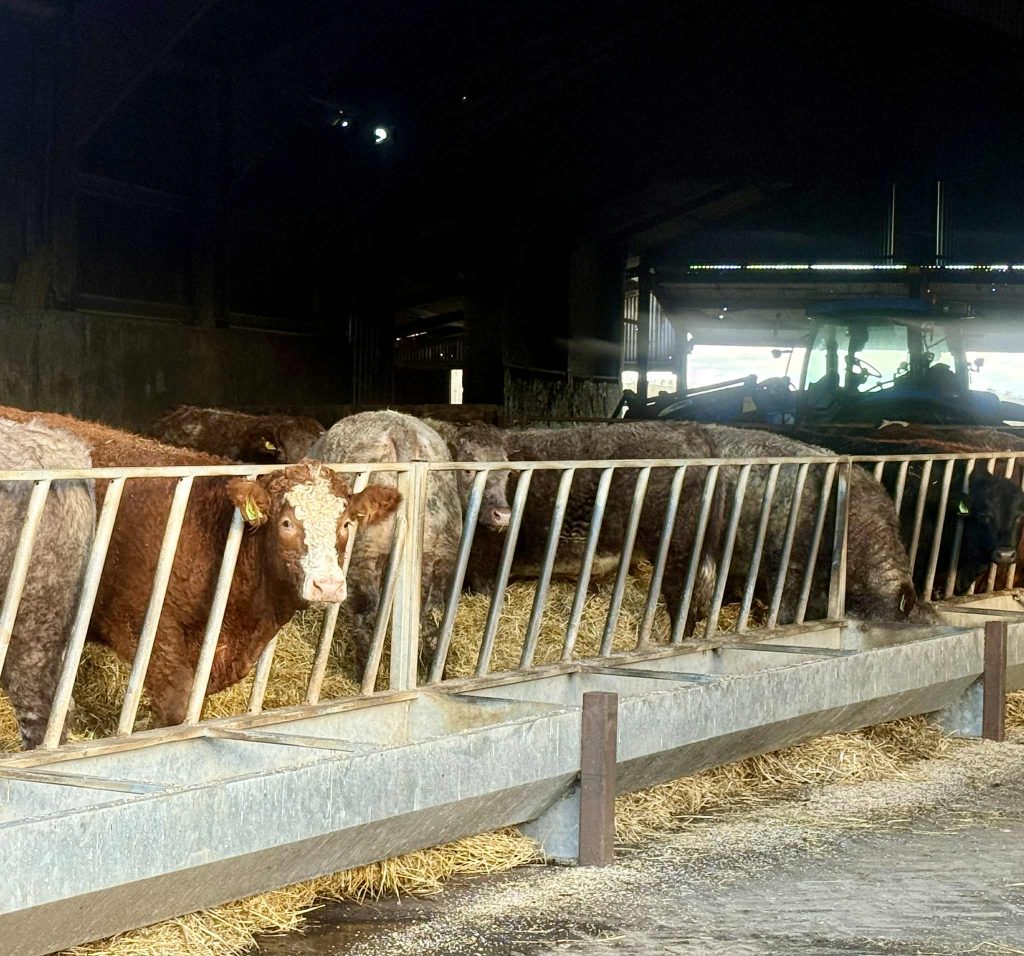コーヒーを飲んだ後、農場方面へ散歩する。気温は低いが風がないので寒さは感じない。羊が戻ってきていて、牛舎には今まで見たことのないベージュ系の牛の姿が。作物を刈り取られた後の畑で鹿が休んでいるのを見る。豚舎では元気のいい豚たちのユーモラスなようすが見られてうれしかった。ふと見上げると虹が出ていた。