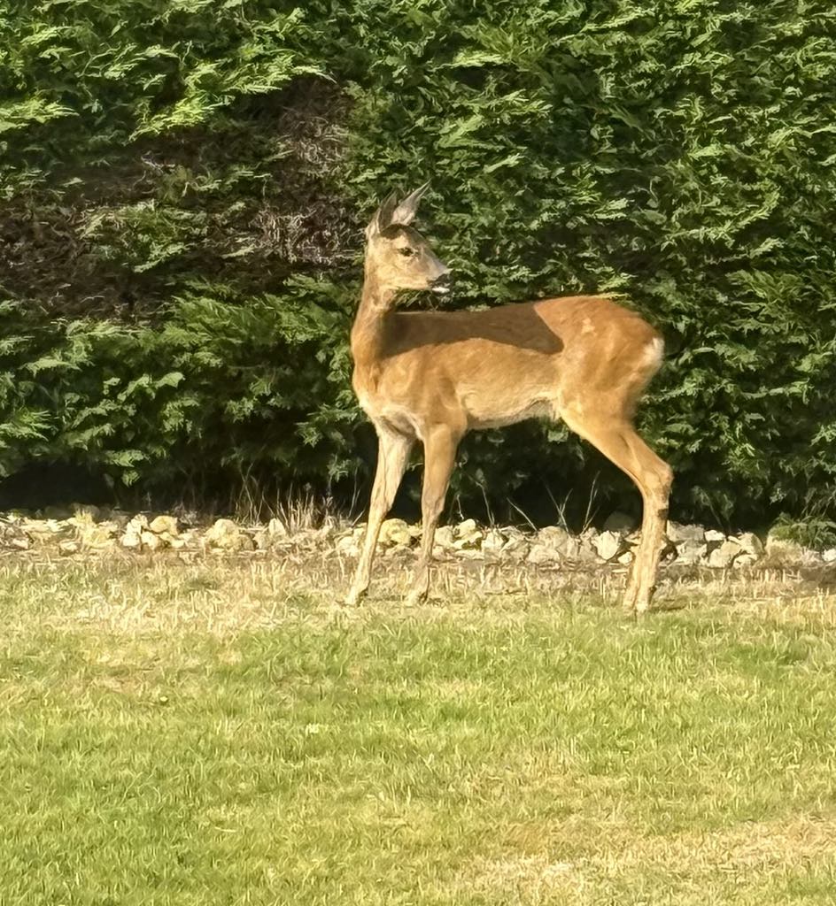 夕方、近所の住宅街を散歩する。帰宅してから庭を見ると鹿が何気なく立っていた。