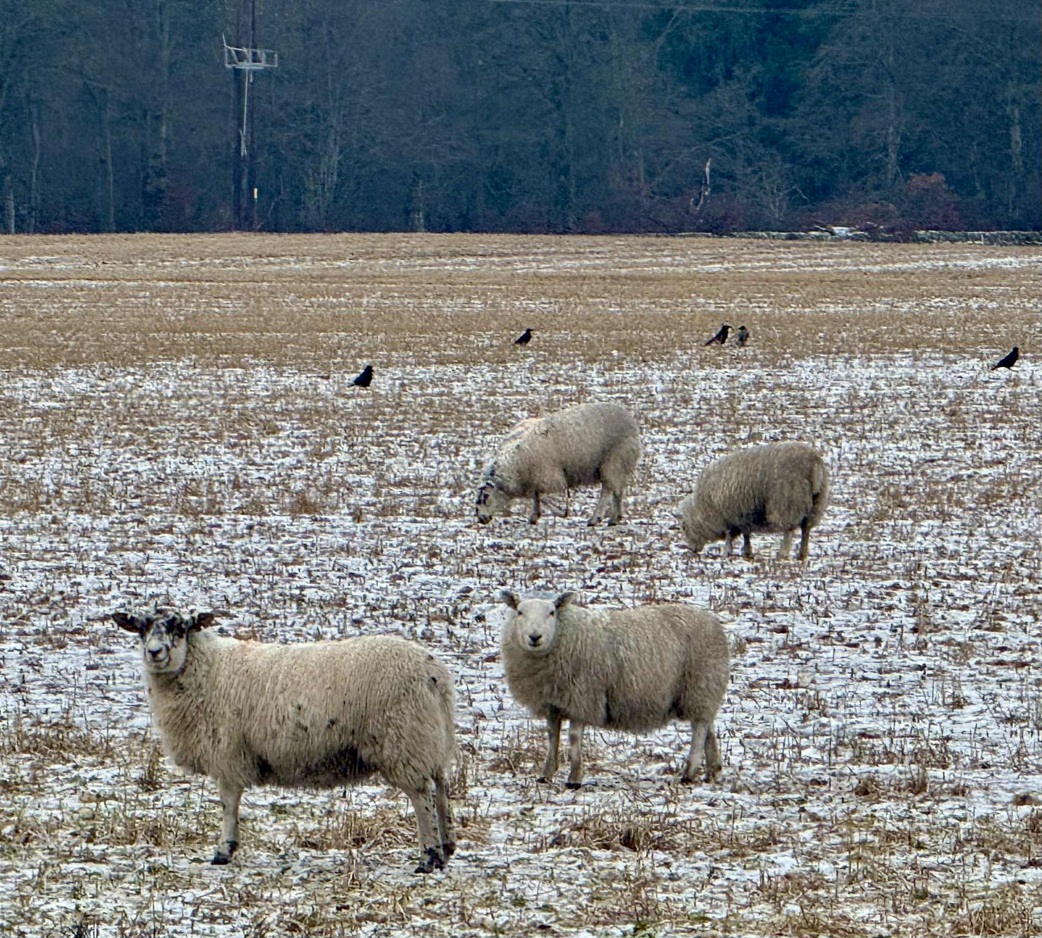 2:30からみぞれが降るとの予報だったので、念のため長靴を履いて散歩に出る。道は所々凍っていたので、長靴で正解。牛や羊、馬たちに心の中で別れを告げる。この地を離れるたび、老親がいた頃に実家を去る時や遠恋していて自分の場所に帰る時のような切なさを感じる。