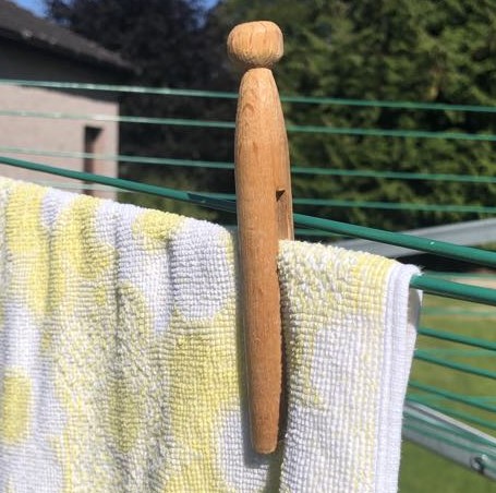 昨日飲みすぎたせいか、いつもより遅く8:20起床。朝から雨だが洗濯機を回す。写真は前日のものだが、このタイプの洗濯ばさみは日本で見たことはない。