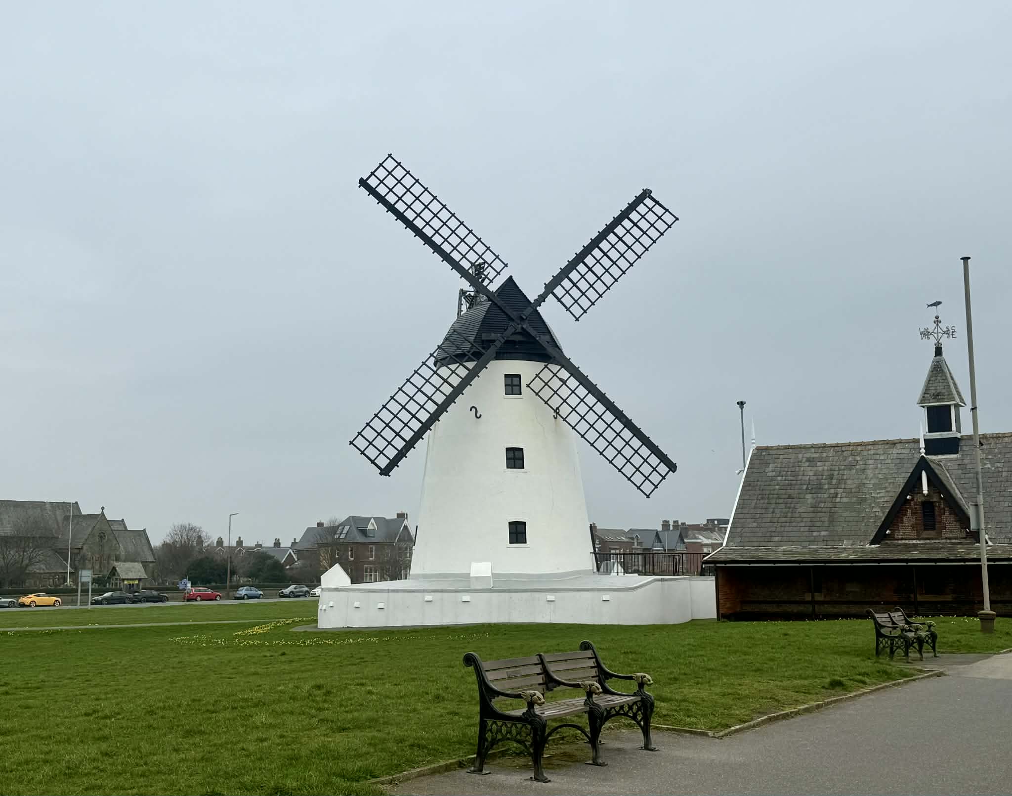 食後は海へ散歩に。小麦を引くための風車が海岸のシンボルになっている。犬を連れている人がかなり多かった。