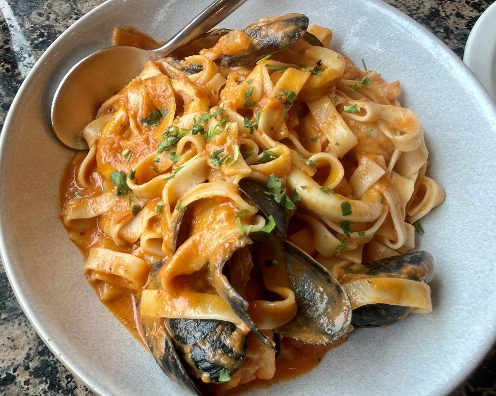 ランチはイタリアンレストランでカラマリと肉系の盛り合わせプレートを前菜に、お義母さんはズッキーニのリゾット、こぐま氏はチキンとチリのピザ、自分は海の幸のタリアテッレを注文する。お義母さんは赤ワイン、自分はプロセッコを飲みながら食事をしたが、どれもおいしくて満足した。