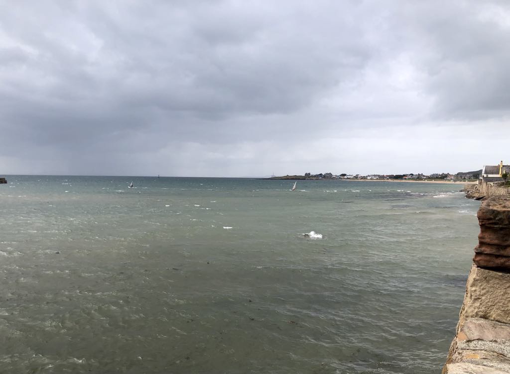 寒そうな空だが、濃い青、エメラルドグリーンのグラデーションをした海の透明度は高い。犬を散歩する人も多いが、子連れファミリーやウィンドサーフィンをする人もちらほら。ライトダウンコートを着ている人が結構いる一方で短パン、ビーサンの人も。我々はお義母さんの速度に合わせてゆっくりと歩く。ベンチに座り、海をながめながら少し休んでから宿に戻る。