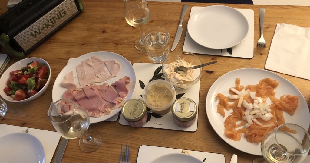 夕食はこぐま氏がソーセージを焼き、パテ、ハムをサラダと一緒につまむ。食後はいつもの新聞のクロスワードをし、その後は宿にあったトリビアクイズゲームをする。今回もこぐま氏が勝ってしまう。