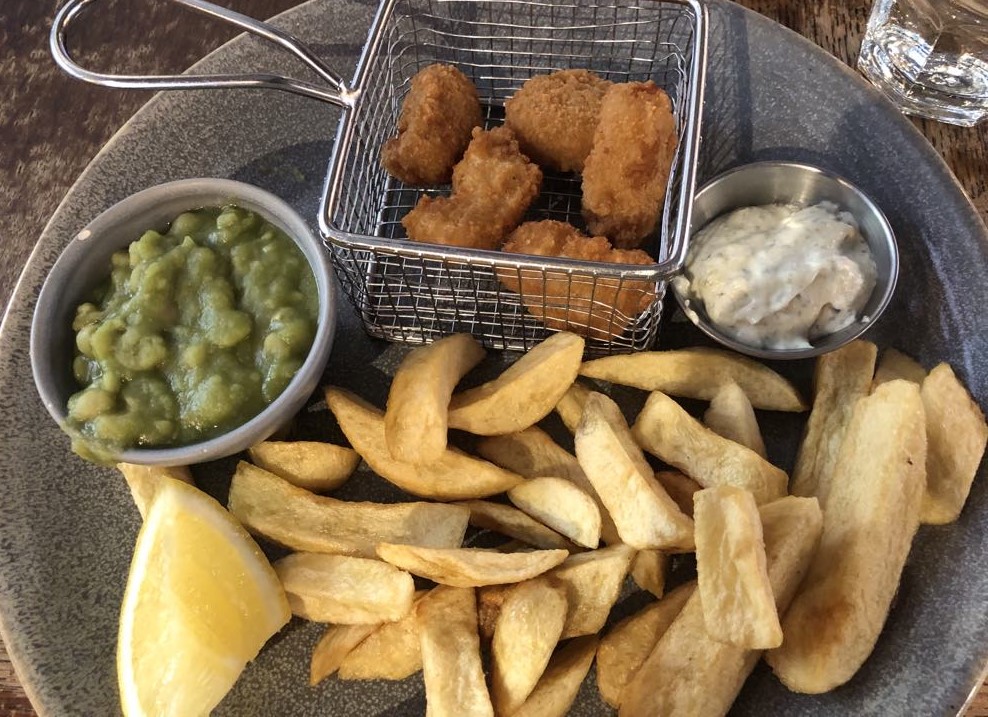 お義母さんと2人でエビフライとポテトを注文、こぐま氏はヘイク(タラの仲間)のグリルでどれもおいしい。